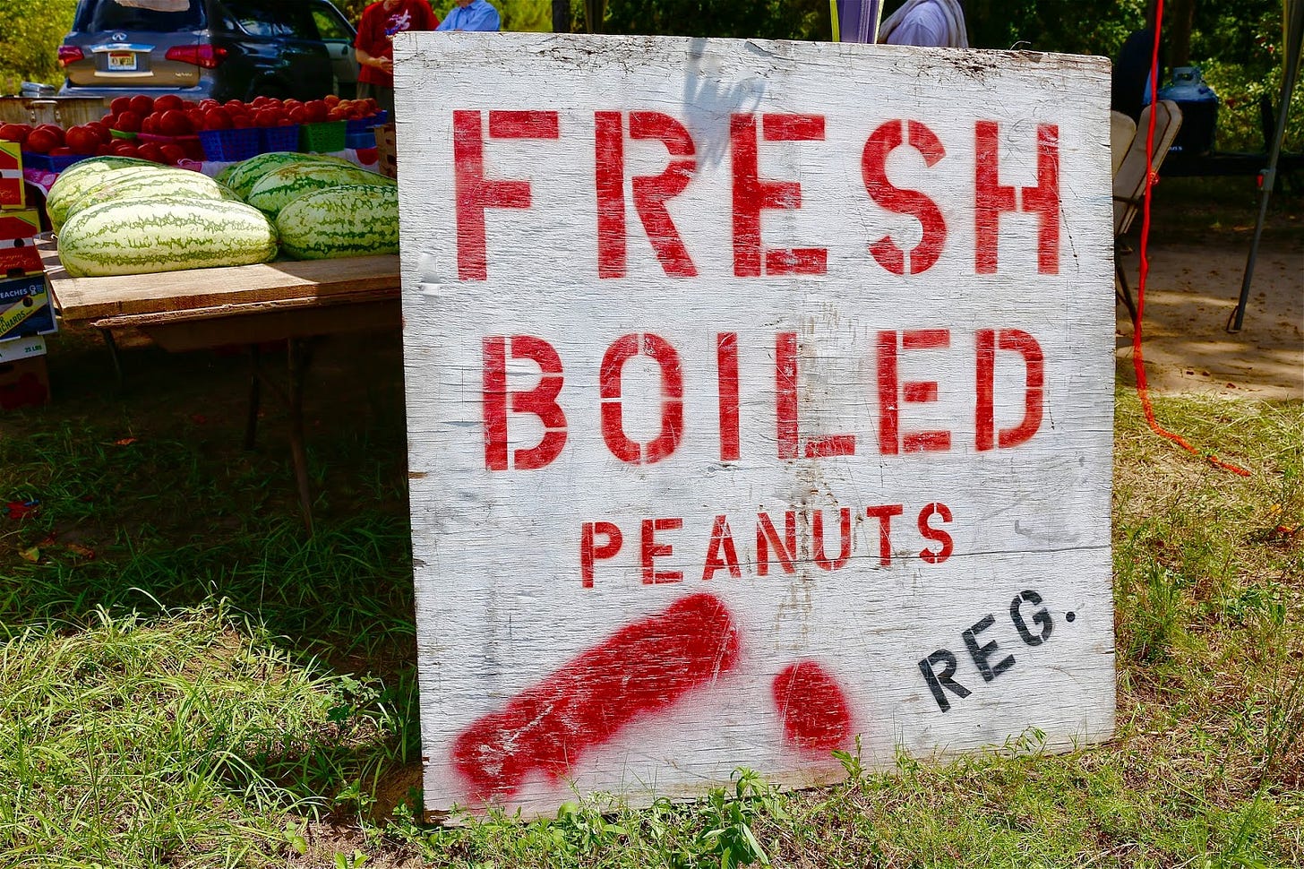 It also puzzles me when you pull over at a Southern gas station, a tobacco-beer shop or fruit stand, and bump into the ever present steaming cauldron, next to which is a hastily scrawled sign proclaiming “World’s Best Boiled Peanuts!” – especially if the ‘w’ is written backwards.